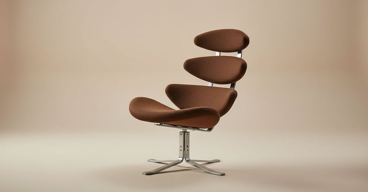 The Corona Chair by Poul M. Volther, designed in 1961 and introduced to the market in 1964, is one of those exceptional creations. It has become a universal icon of Danish Design and mid-century modern aesthetics. With its instantly recognizable silhouette composed of four floating elliptical cushions resting on a stainless steel frame, the Corona Chair breaks away from traditional forms, merging comfort with conceptual beauty.